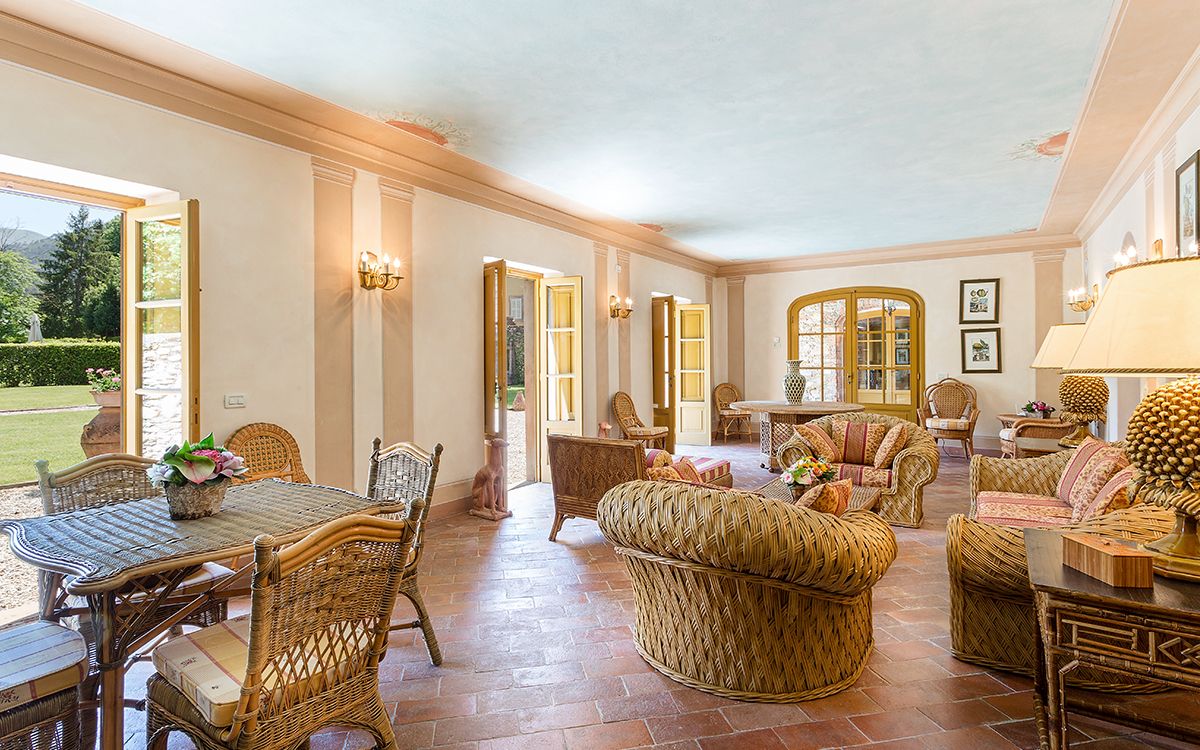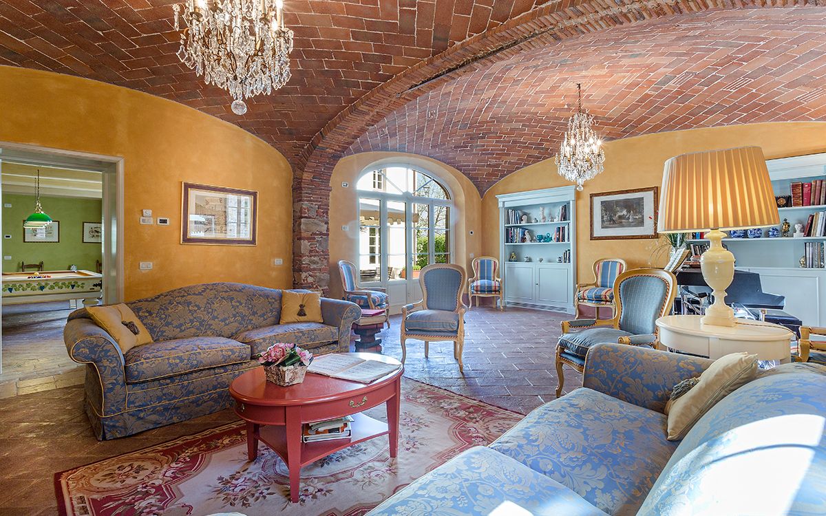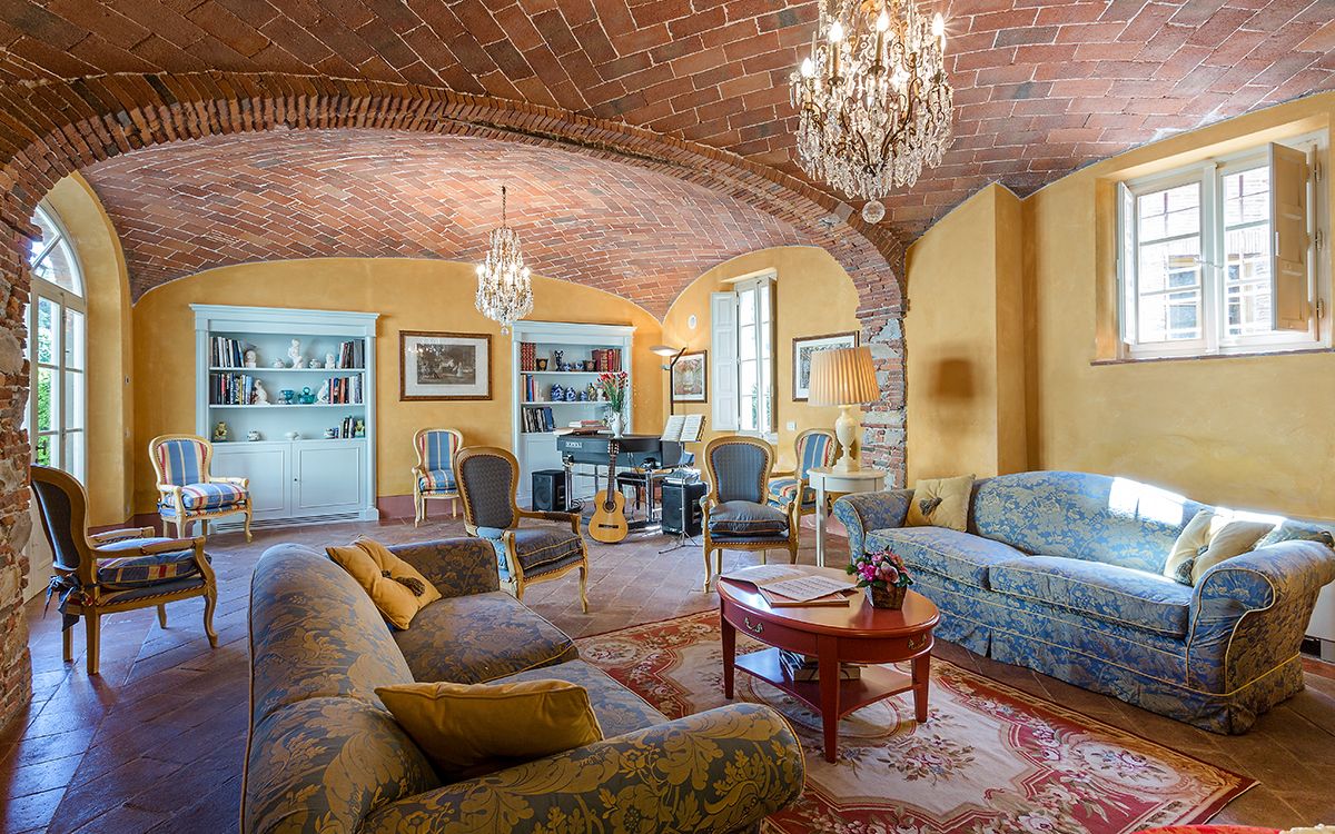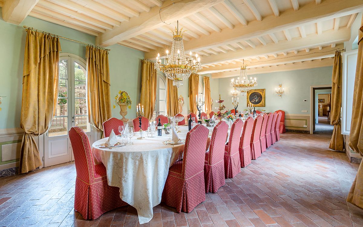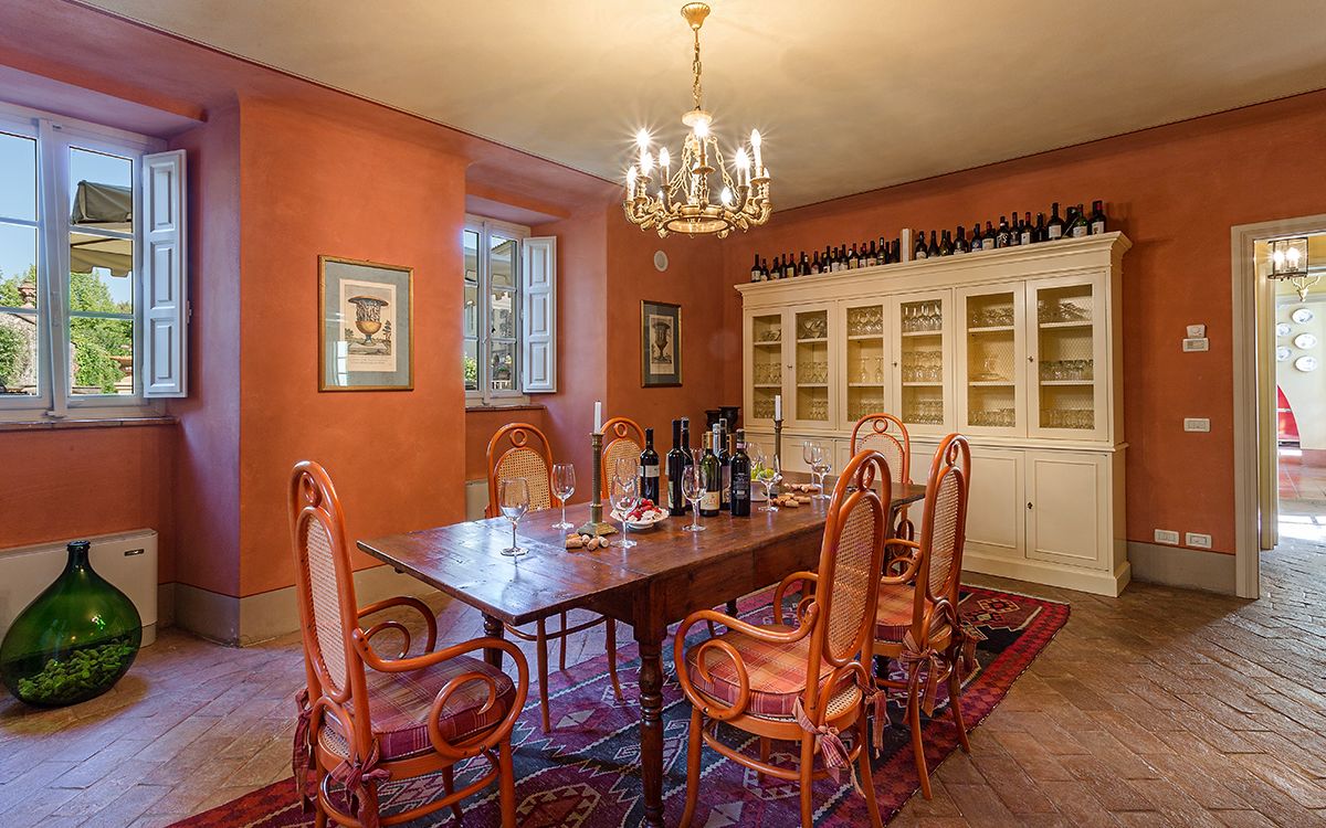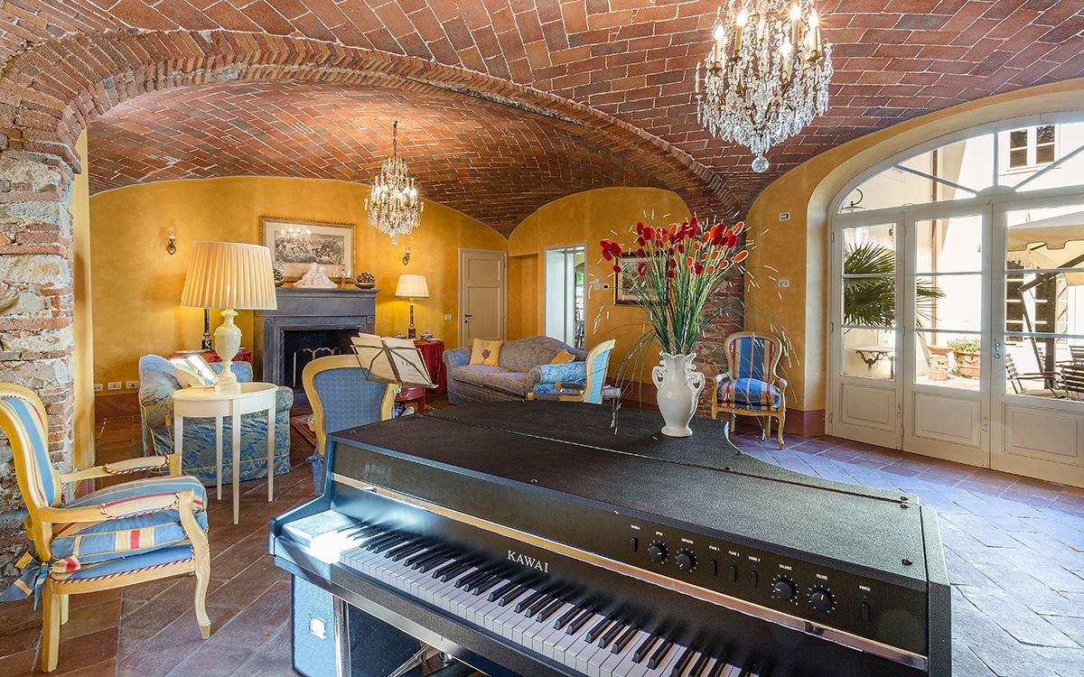 Music room with piano and guitar. Wine tasting room and banquet hall.